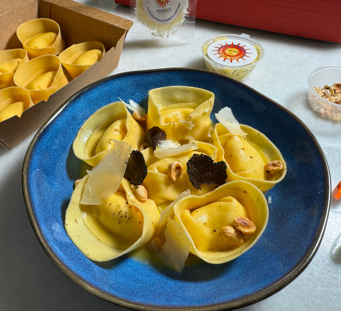 Includes: Handcrafted tortelloni, filled with the finest creamy burrata, and black truffle, paired with browned...