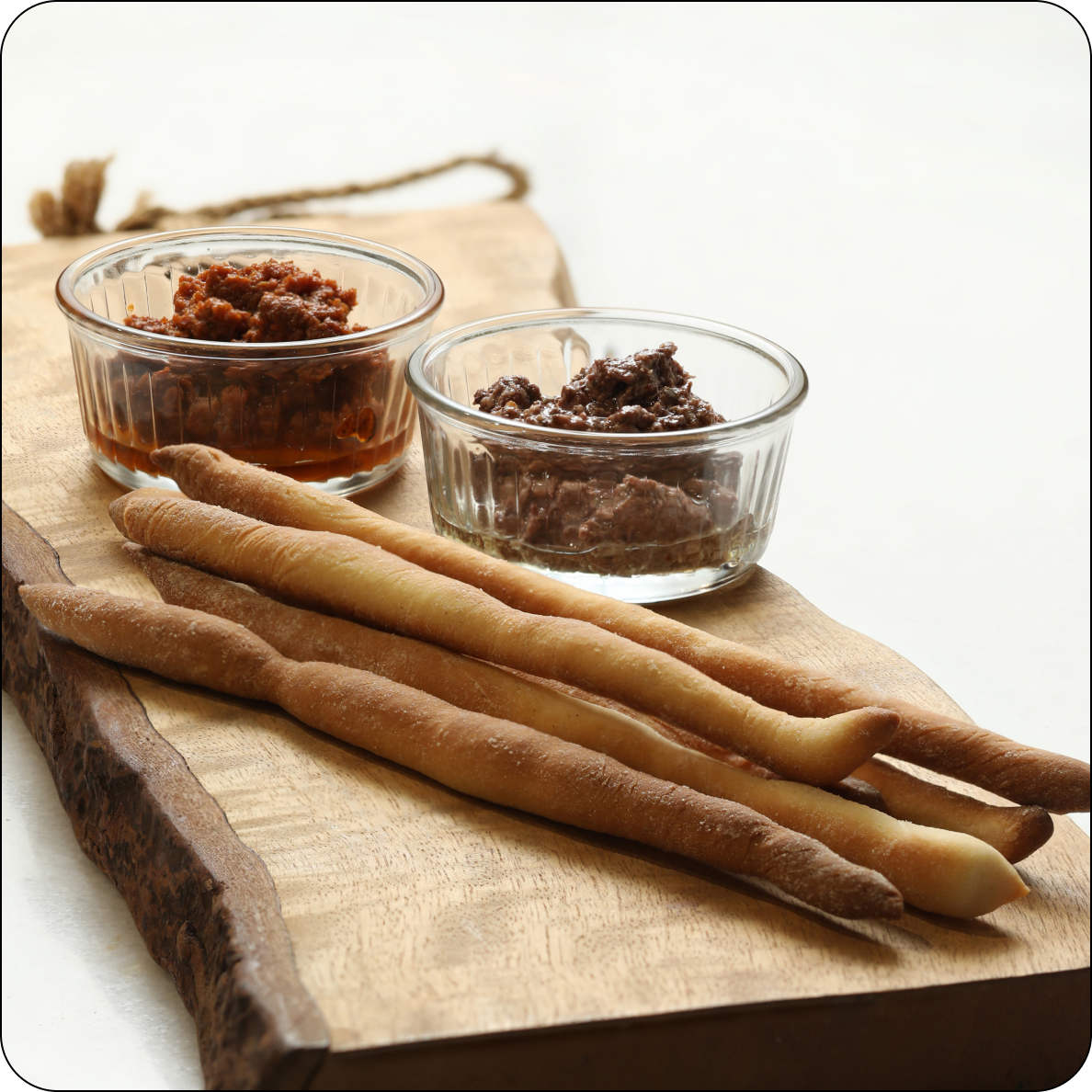 - • Sundried tomato spread (sweet, intense)