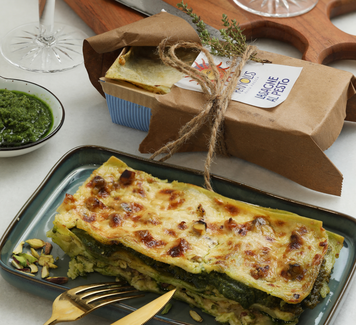 LAYERS OF PASTA WITH CREAMY BASIL PESTO